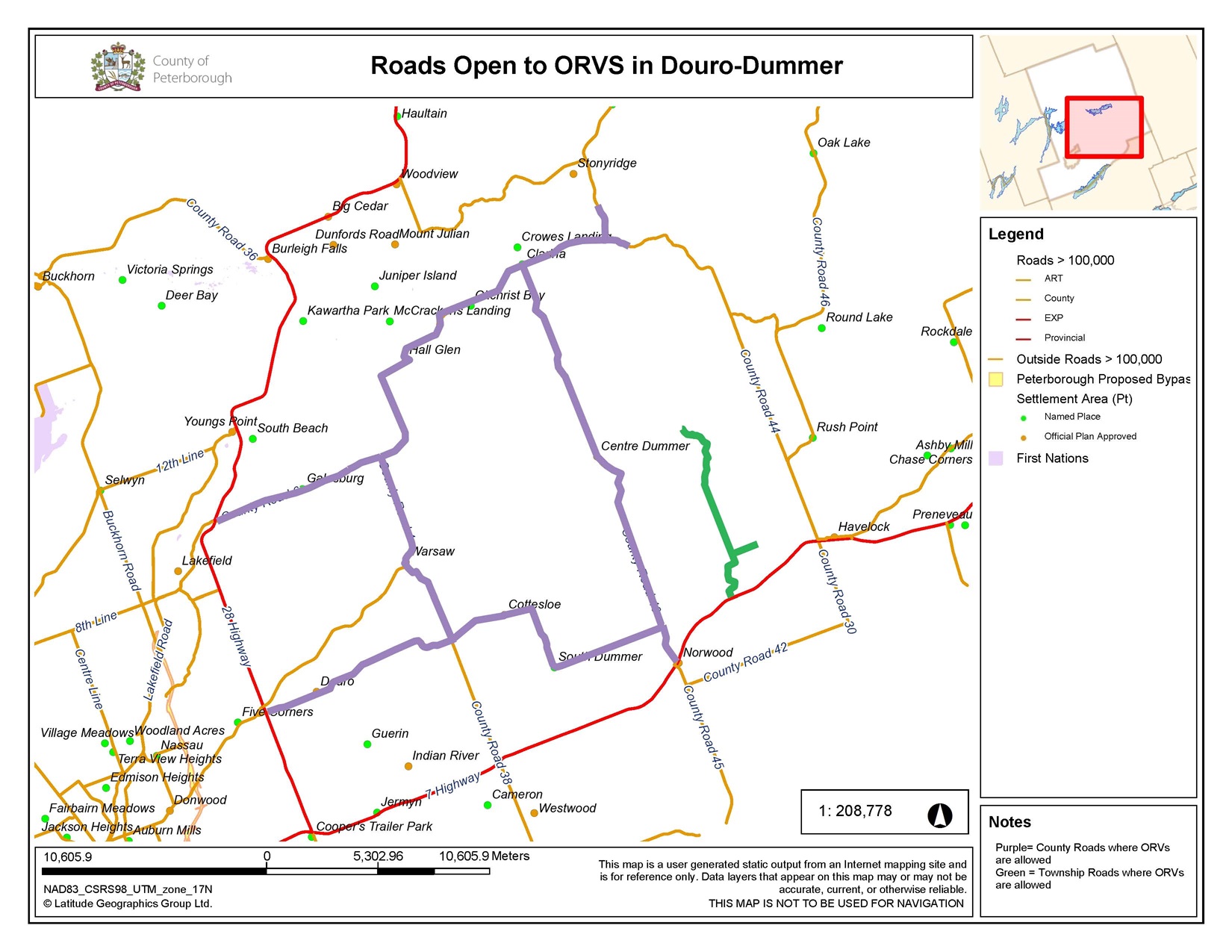 The Off-Road Vehicle By-law regulates the use and operation of off-road vehicles such as ATVs and snowmobiles in the Township of Douro-Dummer. Off-Road Vehicles are only allowed on the Twelfth Line Road Dummer, Simpson Road and select County Roads.